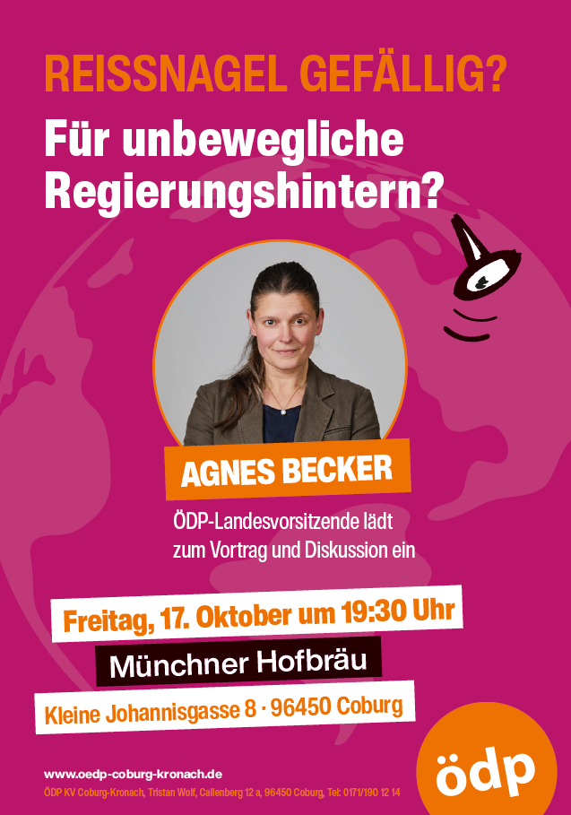 Der KV Coburg hat ÖDP-Landesvorsitzende Agnes Becker zu Gas und lädt zum Vortrag und Diskussion ein.